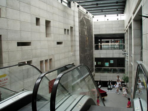 3F、4Fに懸かっている銅版のレリーフ。 旧北京の町並みです。(何時の時代かは見落としました。) |